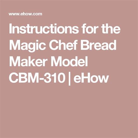 Read magic chef breadmaker manual cbm 310 Doc online is a convenient and frugal way to read magic chef breadmaker manual cbm 310 you love right from the comfort of your own home. Yes, there sites where you can get Doc "for free" but the ones listed below are clean from viruses and completely legal to use.